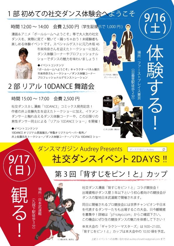 ダンスマガジン Audrey の社交ダンスイベントにて、市來玲奈さんのトークショーがあります。こちらは、社交ダンスをこれから始めたい方を対象にしたイベントです。