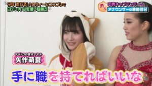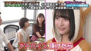 チームに同行していた、MCの中川パラダイス(ウーマンラッシュアワー)さんから「この中で、アナウンサー志望のメンバーっていてんの?」という問いに、矢作萌夏さんが手を挙げ「なんか手に職を持てればいいな!」と話した。そして矢作さんが「アドバイスとか頂けたら…」と求めると、市來アナは、少し考えた後、矢作さんを見つめ明るい口調で「大声で話したりとか…自信を持つ!」と助言というか激励した。