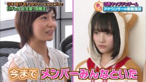 中西智代梨さんは、市來アナに「アイドルからアナウンサーっていう、切り替えって、大変じゃなかったですか?」と質問すると、市來アナは「今一番、寂しいなって感じるのは、今までメンバー皆といることが多かったのが、結構ひとりで仕事をすることも多いので、そういうのってたまに寂しいなぁ~って思ったりします。」と胸の内を語った。