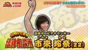 日本テレビ系で、11月5日~11日の間行われる『カラダWEEK』の特番として、3日『来週からカラダWEEK!あなたのカラダ何歳ですか?』という番組が放送されました。番組中『行列のできる法律相談所』のコーナーに、MCの後藤輝基さんとアシスタントの市來玲奈アナが出演しました。