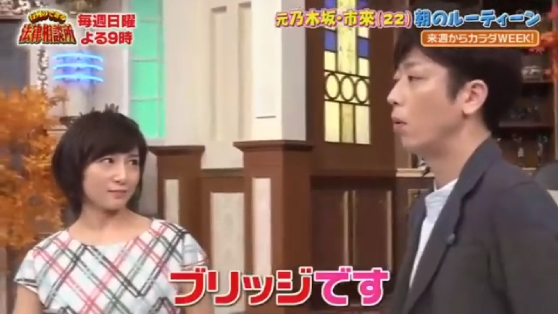 日本テレビ系で、11月5日~11日の間行われる『カラダWEEK』の特番として、3日『来週からカラダWEEK!あなたのカラダ何歳ですか?』という番組が放送されました。番組中『行列のできる法律相談所』のコーナーに、MCの後藤輝基さんとアシスタントの市來玲奈アナが出演しました。