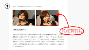 1.記事内の拡大したい画像を、パソコンの場合はマウスでクリック、スマホの場合は指でタップしてください。(下図①参照)