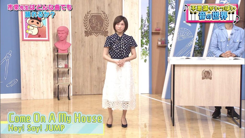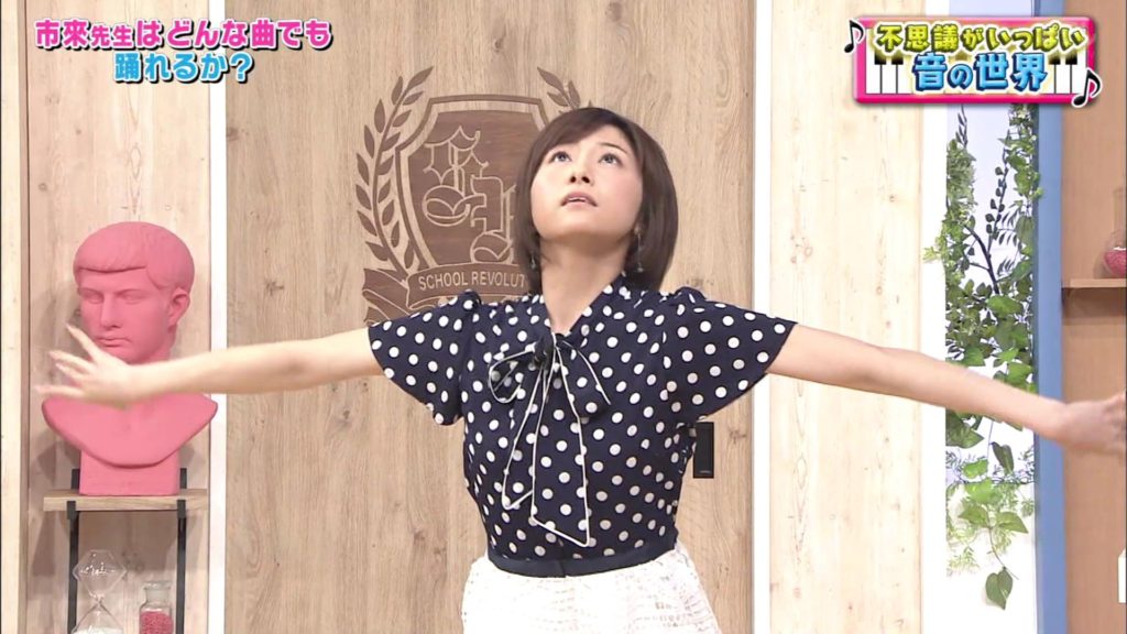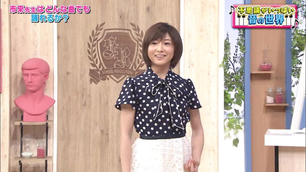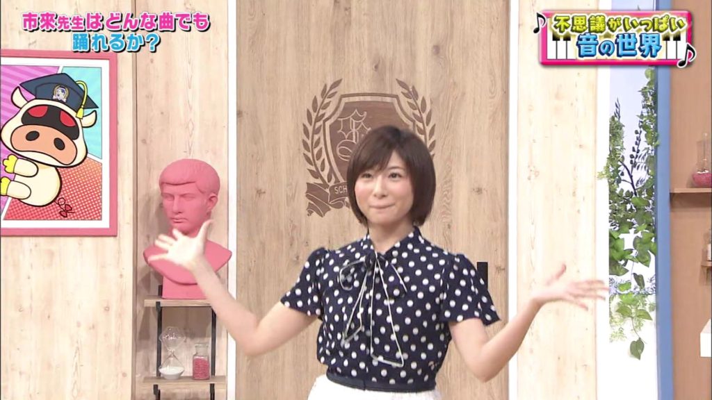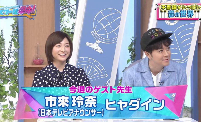 7日、市來玲奈アナウンサーは日テレ(関東ローカル)放送の『スクール革命!』にゲスト先生としてヒャダイン先生とともに出演。今回は『不思議がいっぱい!音の世界』ということで、クイズ形式で音について楽しく学んだ。
