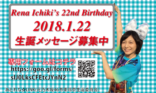2018年1月22日に22歳になる市來玲奈さんへ生誕メッセージをお贈りしませんか。あどれな☆LINKでは、今年も専用フォームを用意して皆さまからのメッセージをお…